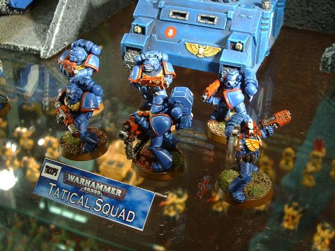 This crisp-looking combat squad of Ultramarines resides at the Oxford Circus store. (55K) | |