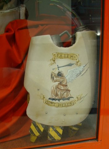 Visitors to the Oxford Circus store are greeted by this fellow in the front window. Further on down is a matching power fist. (58K and 28K) | |
